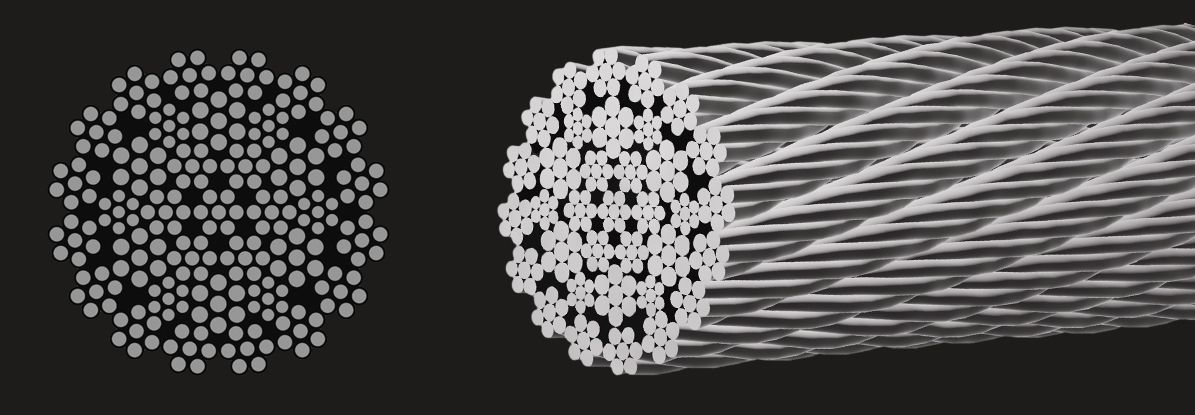 This wire rope is multi-stranded and rotation resistant, and it is used as a hoisting wire rope. It has a 3-layer construction and is suitable for use on many crane brands that are installed on board.