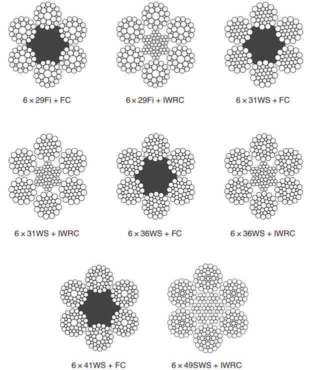 | 6x36 | Luffing cranes, elevators, mining hoists, bending-intensive applications |