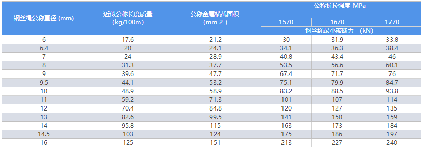 鋼絲繩產品一覽表