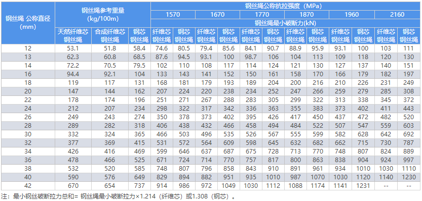 繩結構: 6x19S+FC 6x19S+IWR 6x19W+FC 6x19W+.IWR