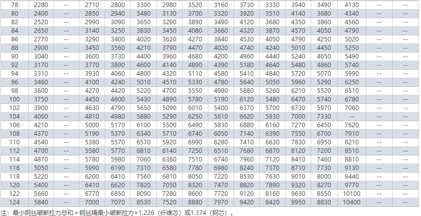 用 途:8×36WS、8×41WS、8×49SWS: 繁忙起重及其他重要用途起重機、打撈沉船 8x49SWS、8x55SWS:大型吊裝起重、船舶海上施工和打撈等