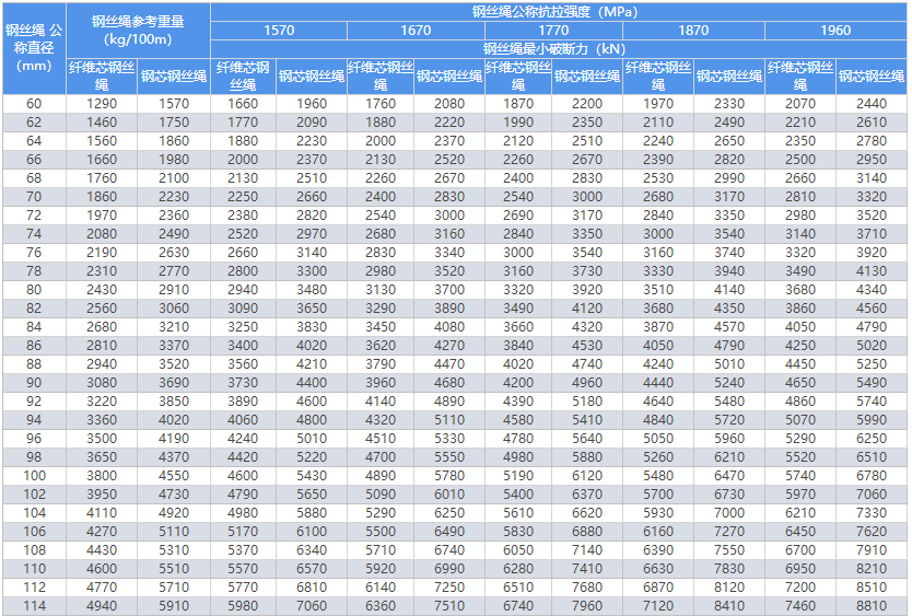 繩結構:8×61FWS+FC 8×61FWS+IWR 8×64SFS+FC 8×64SFS+IWR