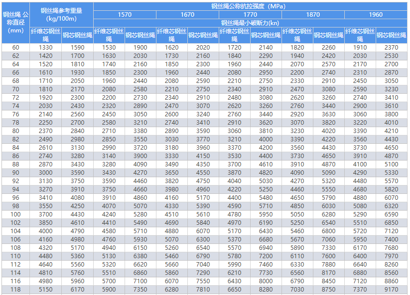 溫馨提示:鋼絲繩型號可以根據客戶的要求涂塑,填包塑,鍍鋅,壓實等特殊的工藝訂制。