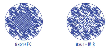 繩結構:8X61+FC 8X61+IWR用 途:大型吊裝起重、船舶、海上設施和打撈等