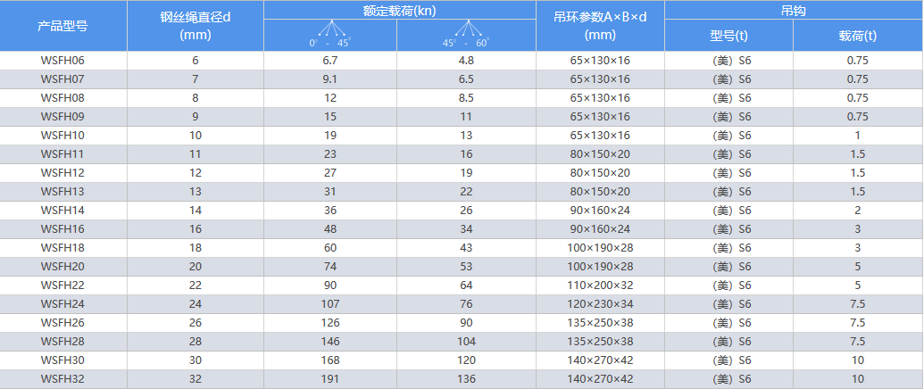 3.鋼絲繩規(guī)格不同,其額定載荷不同,可根據(jù)客戶要求的鋼絲繩來計算額定載荷。