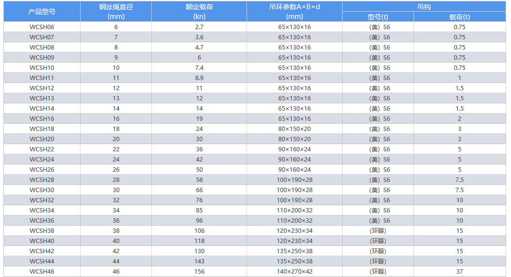 2.鋼絲繩結構不同,其額定載荷不同可根據客戶要求的鋼絲繩結構來計算額定載荷。