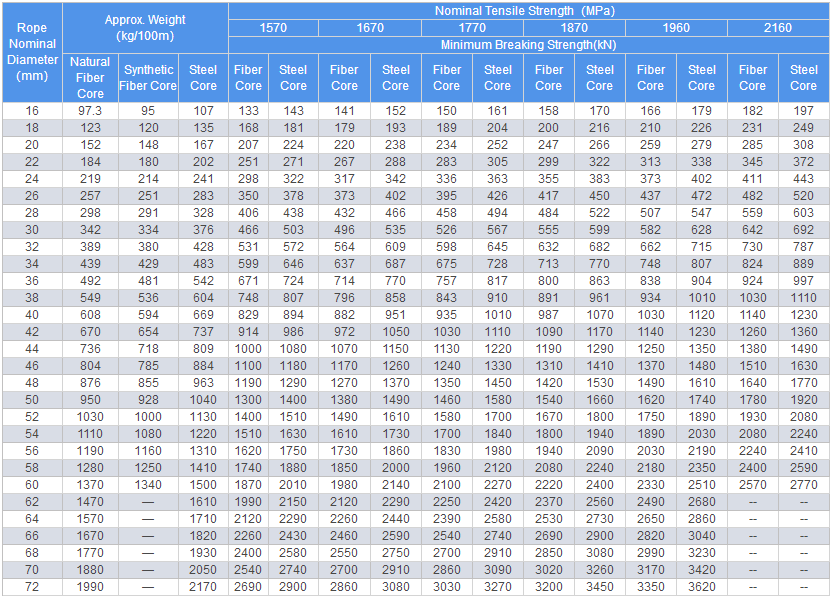 6×49SWS、6×55SWS: It is used in heavy lifting and other important usage of crane, salvage.