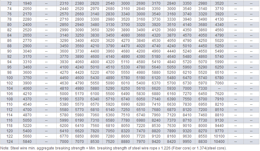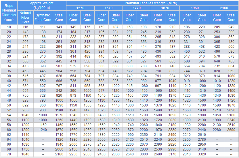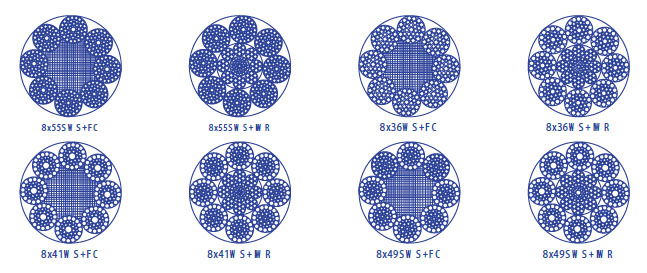 Application :8×36WS、8×41WS、8×49SWS: It is used in heavy lifting and other important uses of crane, salvage. 8x49SWS 、 8x55SWS : It is used in large hoisting crane, ships, offshore installations, salvage, etc.