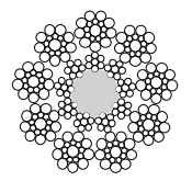 Aulone-made combined steel and fibre core, 9 strand wire rope, strand construction Seale.