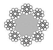 Synthetic fibre core, 8 strand wire rope, strand construction Seale.
