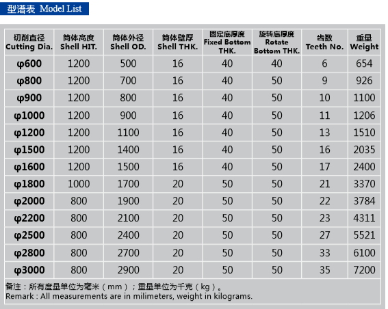 Cutting DIA. Custom : design various cutting diameter based on demand, like φ950、φ1050 etc.