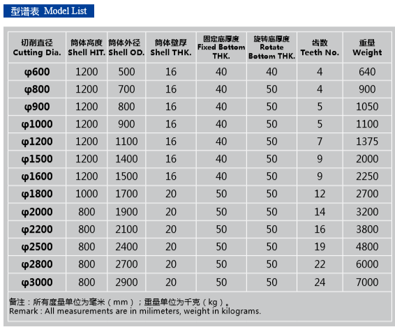 Cutting DIA. Custom : design various cutting diameter based on demand, like φ950、φ1050 etc.