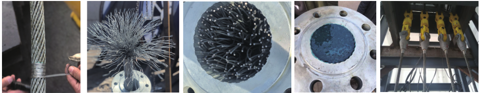 2. Cold casting does not require high temperature. It is convenient to cast and use it.-40 °-+90 can be used. Steel wires are not treated at high temperature, which can ensure that the toughness and tension of steel wire are not reduced. The root steel wire of the roots does not melt off. The wire rope is broken for 100% without losses!
