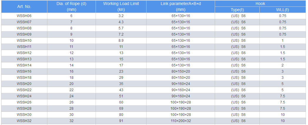 3.Both ends of fittings with safety factor 4, and other parts safety factor is 5.
